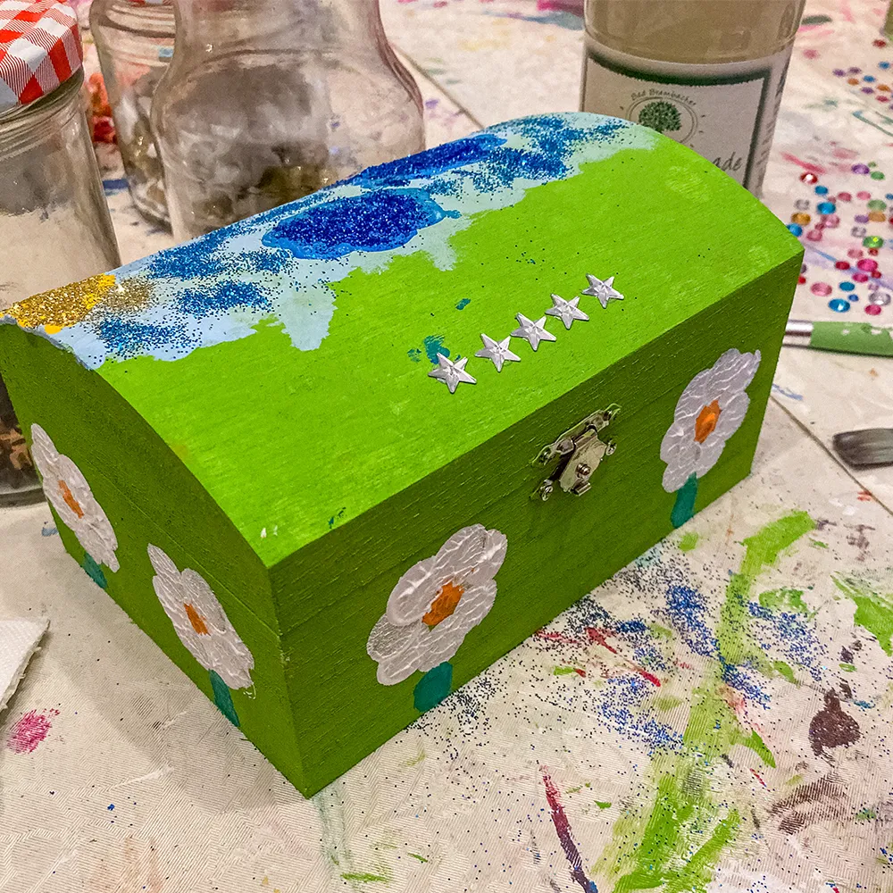 Hier kannst du deine eigene Kiste gestalten, bemalen und verzieren…